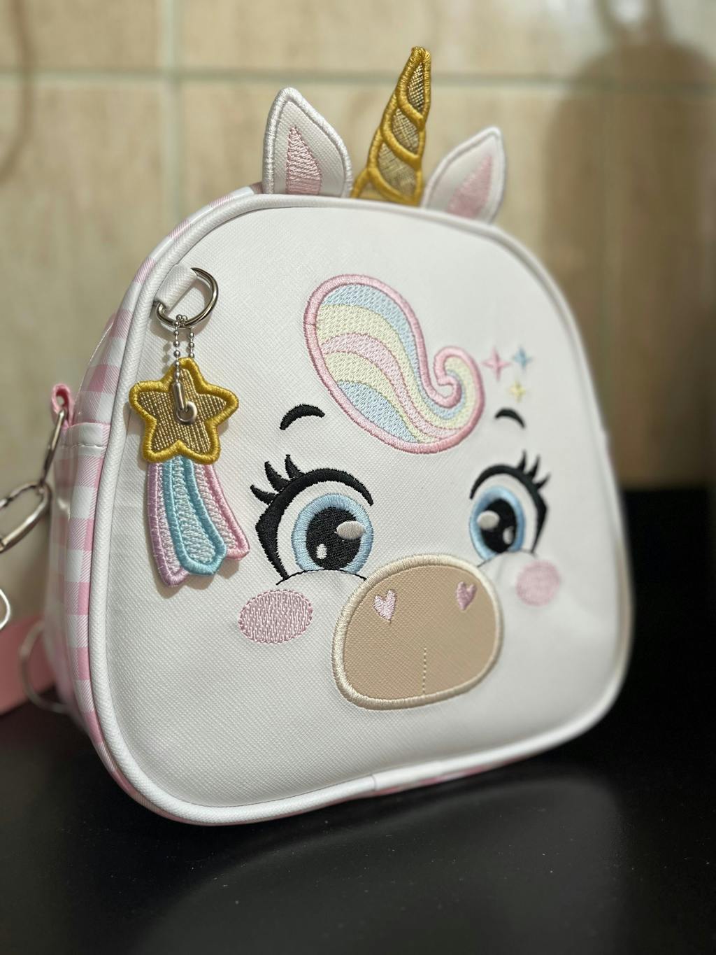 - Design lúdico e personalizável com o nome, tornando a mochila única e especial.