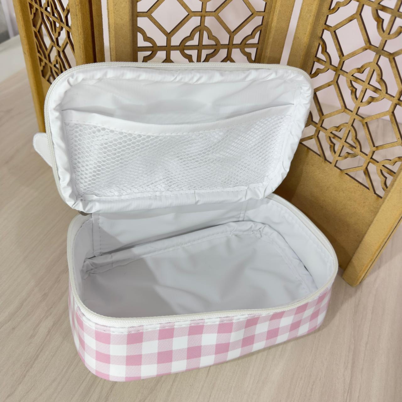 CARACTERÍSTICAS: Design compacto, funcional e delicado — ideal para organizar itens do bebê como fraldas, lencinhos e pomadas, tanto no uso diário quanto em passeios e viagens.
