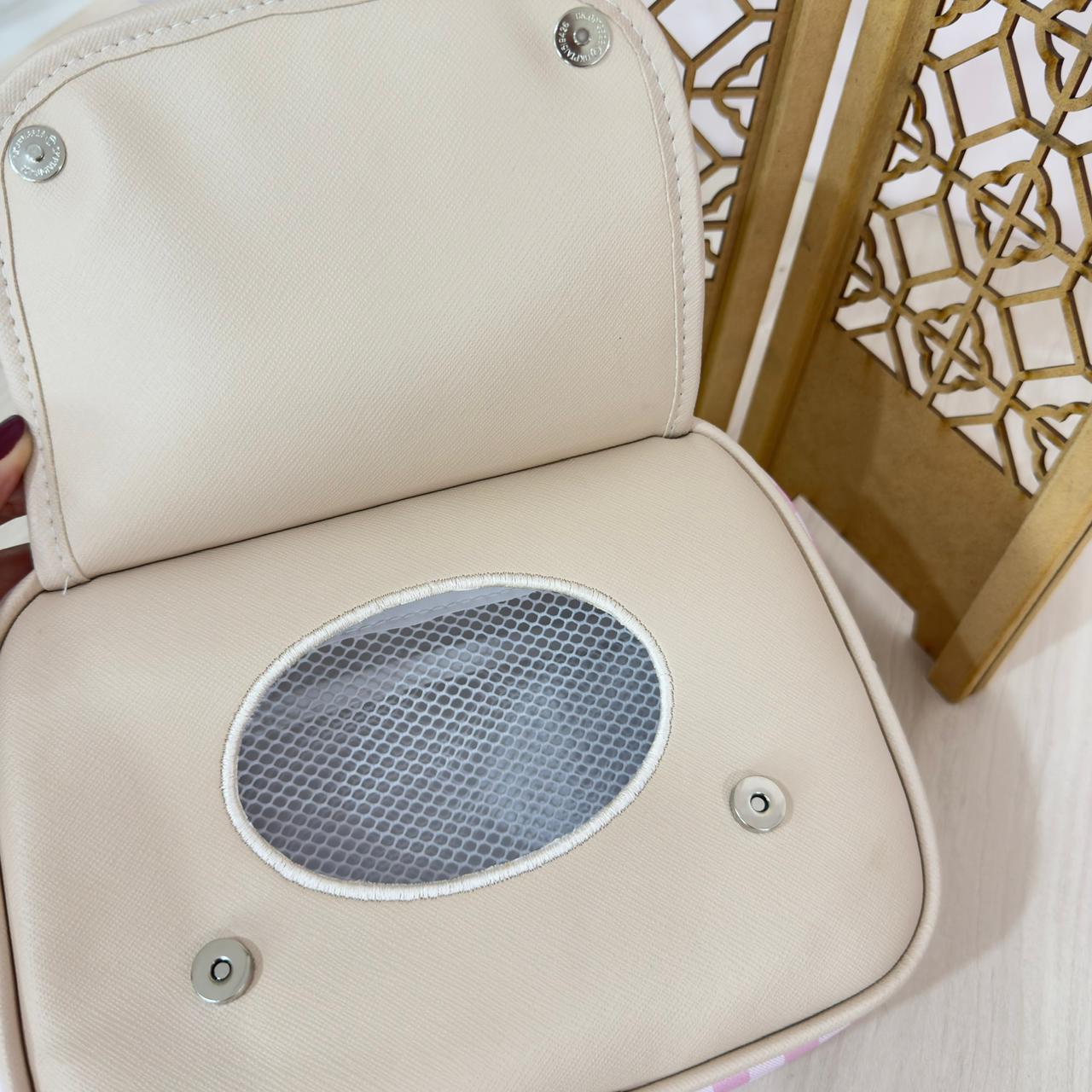 CARACTERÍSTICAS: Design compacto, funcional e delicado — ideal para organizar itens do bebê como fraldas, lencinhos e pomadas, tanto no uso diário quanto em passeios e viagens.